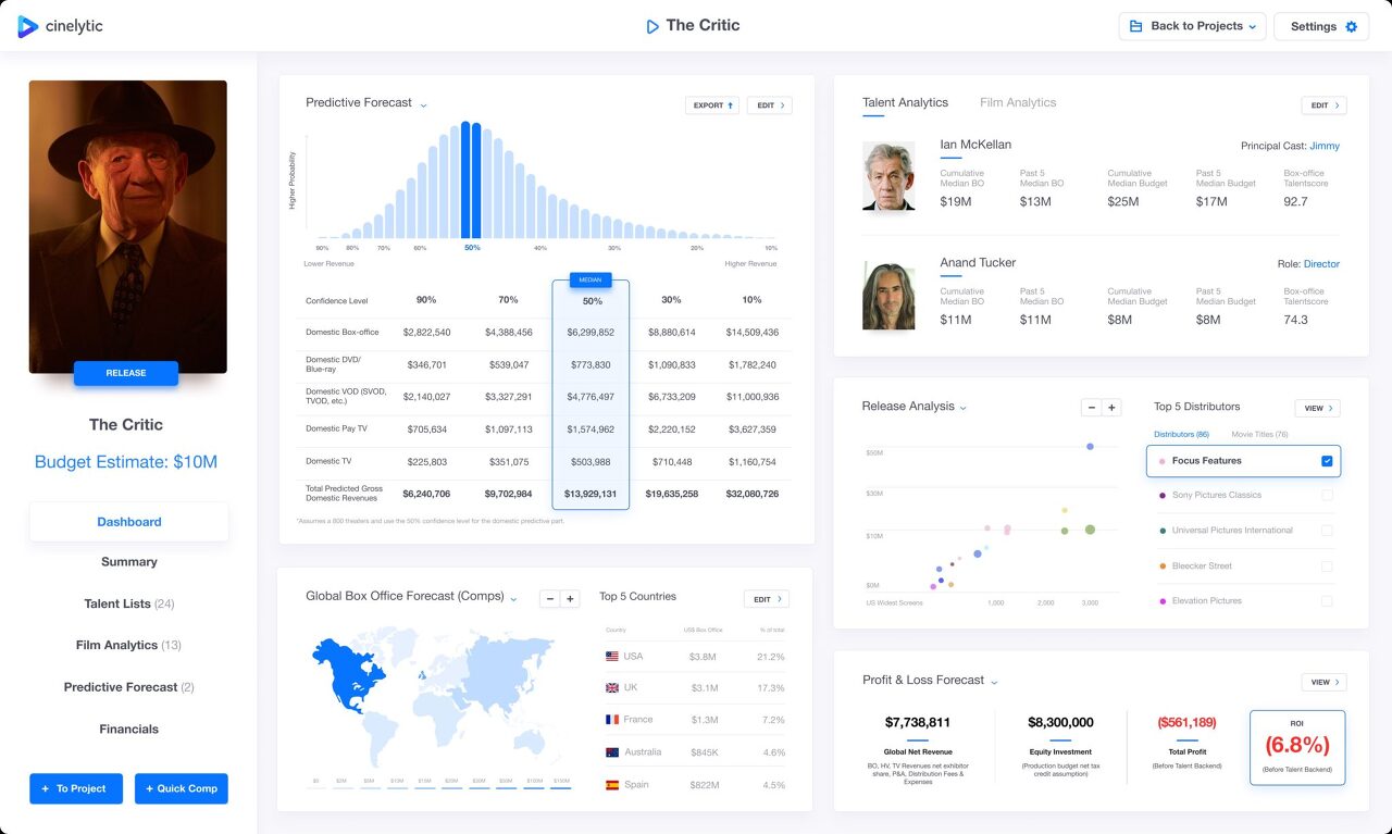 이번 인수를 통해 Cinelytic은 자사의 데이터를 Rightstrade의 온라인 마켓플레이스에 포함시킬 수 있게 되었습니다. Cinelytic의 예측 분석 및 프로젝트 관리 도구는 회원사가 예산 및 회수 모델을 구축하고, 수익을 예측하며, 인재 가치에 기반한 정보에 입각한 의사결정을 내리는 데 도움이 됩니다. 영업 에이전트, 유통업체, 프로듀서, 금융기관이 수년 동안 사용해 왔습니다.