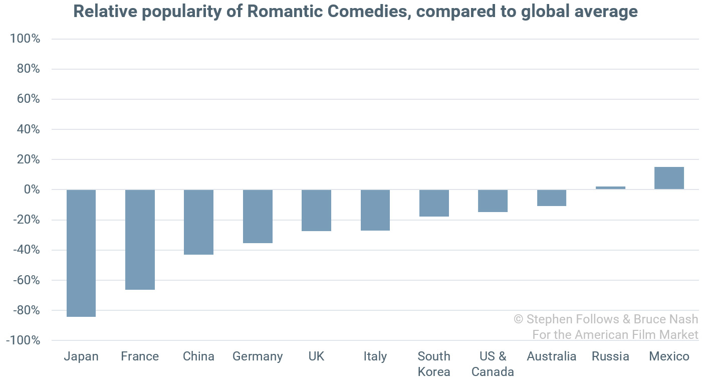 멕시코는 로맨틱 코미디에 매우 건전한 시장으로 밝혀졌으며, 러시아도 이 목록에서 상위권에 올라 놀라움을 금치 못했습니다.