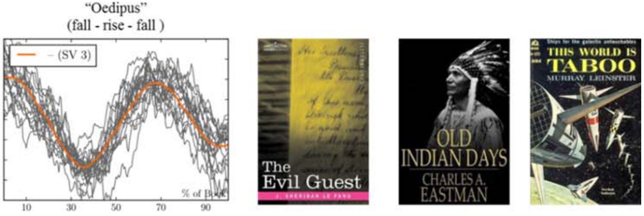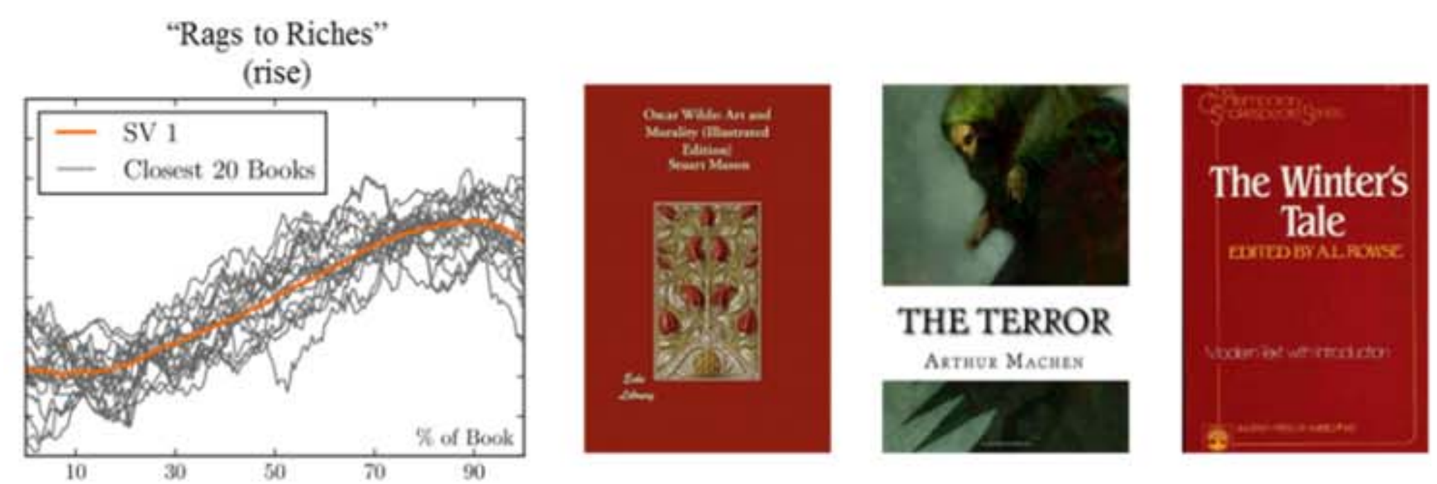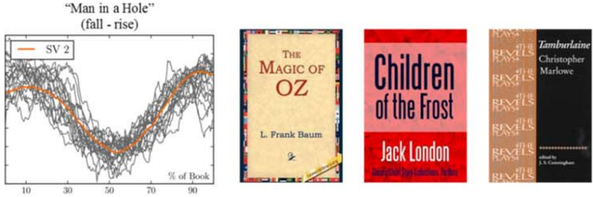 물론 많은 책이 더 세밀한 해상도로 더 복잡한 호를 따릅니다. 예를 들어 레이건과 코의 방법은 문단 수준에서 발생하는 감정 극성의 변화를 포착하지 못합니다. 대신 스토리텔링과 관련된 훨씬 더 광범위한 감정적 호를 포착합니다.