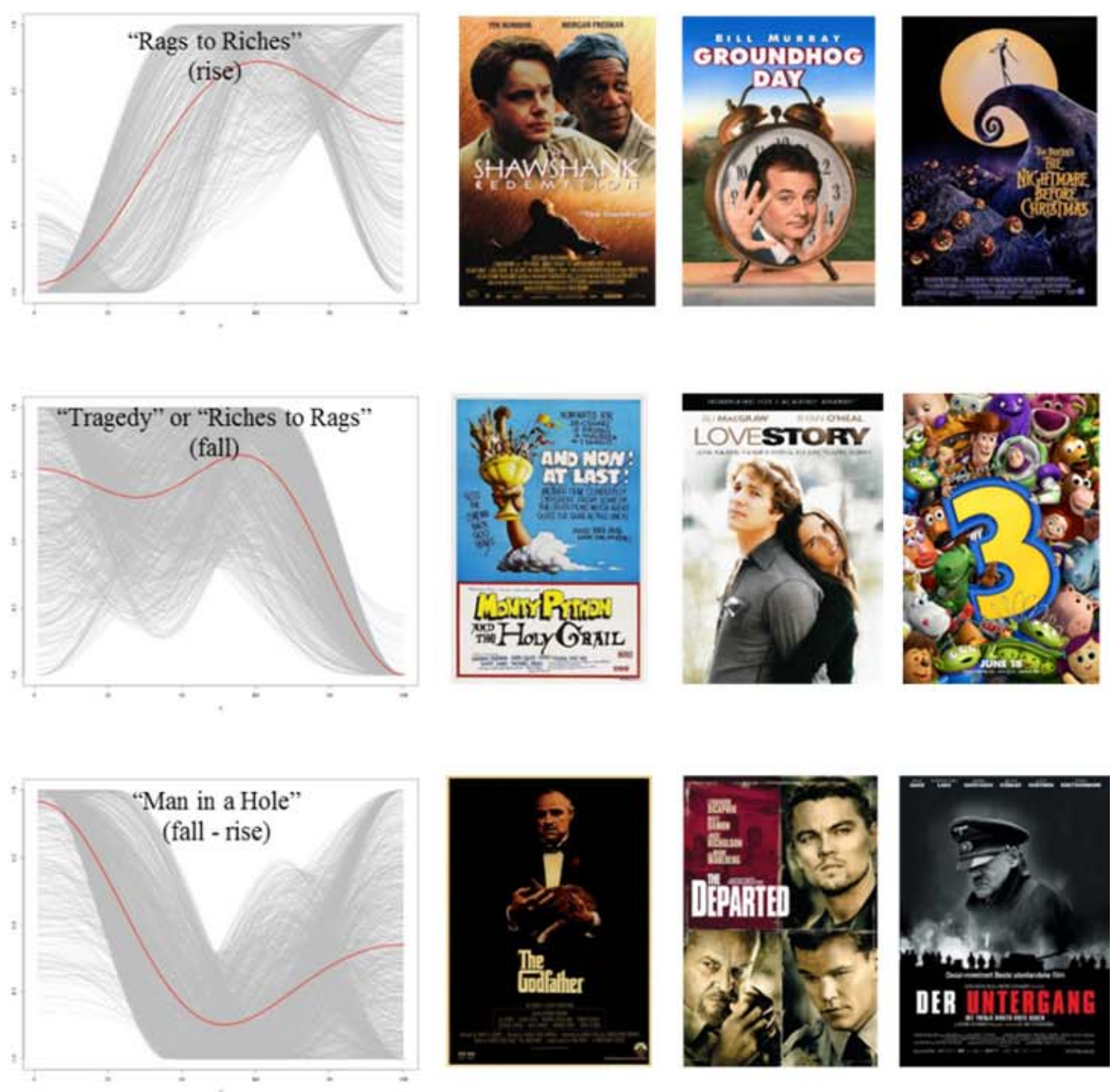 오늘날, 벌링턴에 있는 버몬트 대학교의 컴퓨터 스토리 연구소의 앤드류 레이건과 몇몇 동료들의 연구 덕분에 상황이 바뀌었습니다. 이들은 감정 분석을 사용하여 1,700개가 넘는 스토리의 감정선을 매핑한 다음 데이터 마이닝 기법을 사용하여 가장 공통적인 호를 밝혀냈습니다. "우리는 복잡한 내러티브의 구성 요소를 형성하는 6가지 핵심 궤적을 발견했습니다."라고 그들은 말합니다.