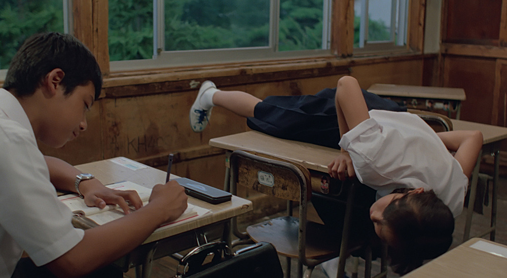 태풍이 접근하면서 교실에서 벌어지는 "전 학급이 참여하는 난투"는 공간의 질서가 해체되는 과정을 보여준다. 소마이 신지는 이 장면을 "4개 부분으로 나뉘어 혼돈스러운 프레임"으로 연출함으로써 딥포커스 연출의 숙련함을 보여주면서 동시에 교육제도 자체의 폭력성을 폭로한다.
